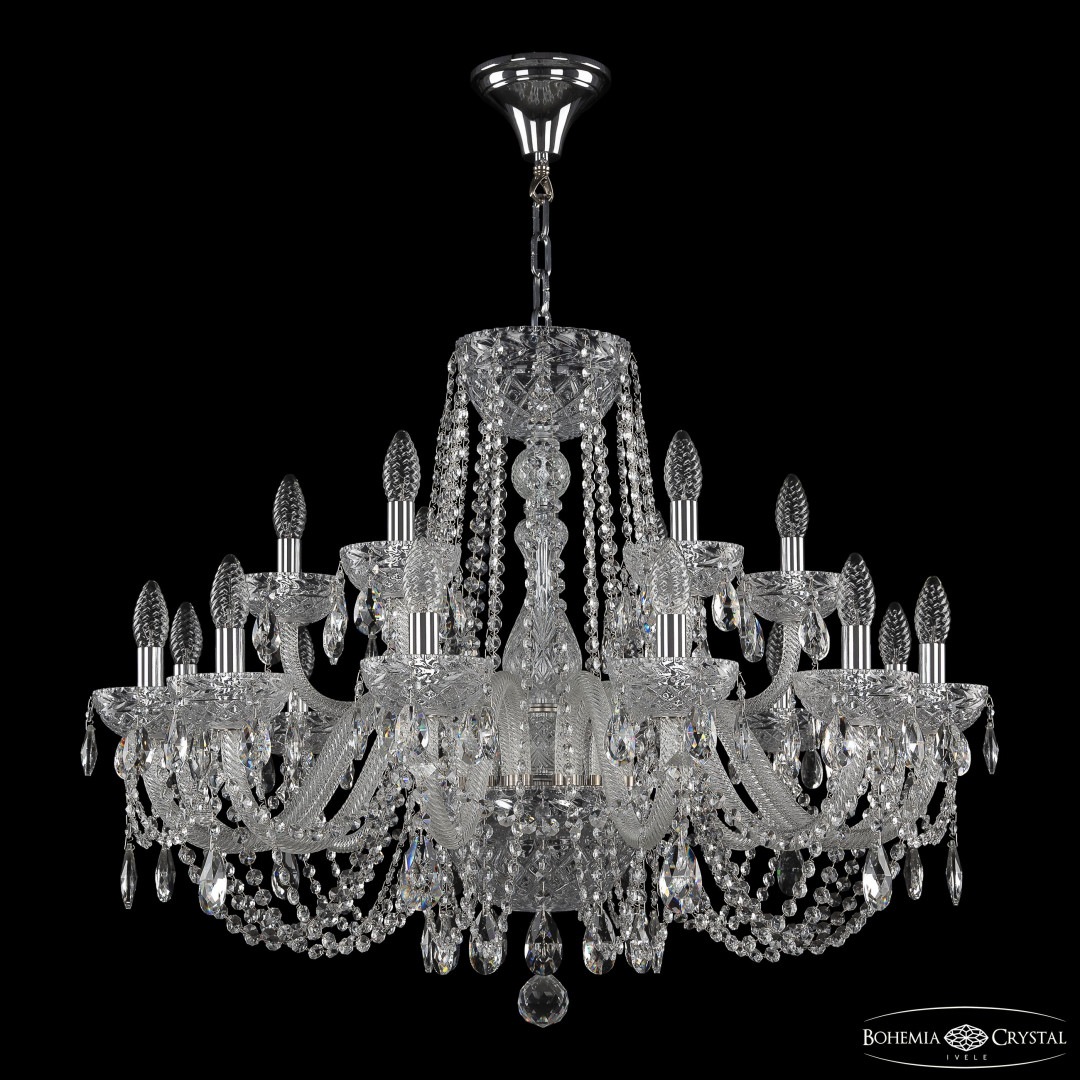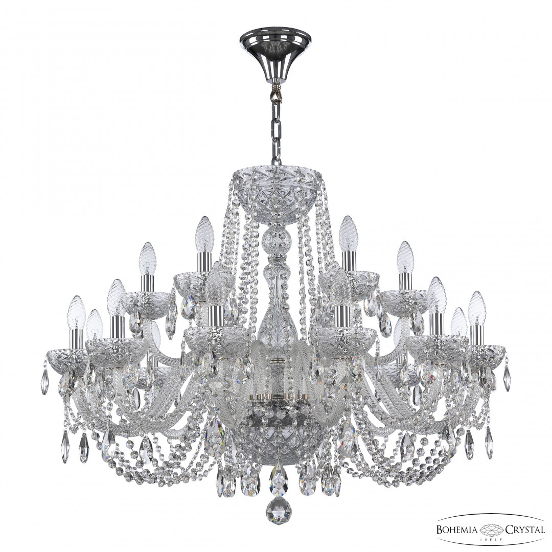 Люстра хрустальная 5402/12+6/300 Ni Clear/M-1F Bohemia Ivele Crystal